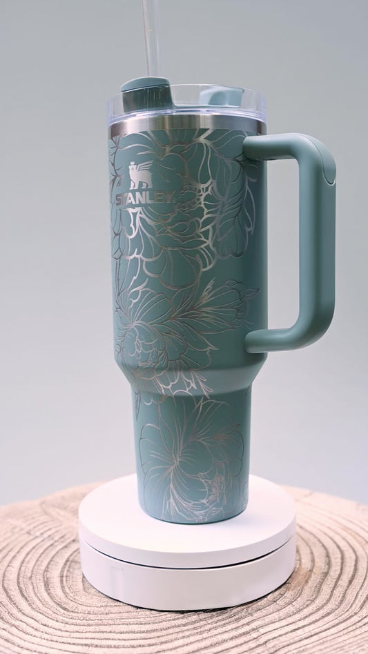 Peony Floral FULL WRAP Engraved 40oz Engraved Stanley Cup Tumbler with HandleRegular price $100.00 USDRegular priceUnit price / per-